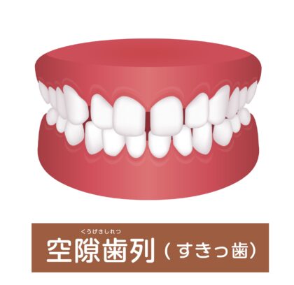 すきっ歯(空隙歯列)は、歯と歯の間にすき間がある状態です。見た目が気になるだけでなく、すき間に汚れがたまりやすく、歯磨きがしづらくなるため、むし歯や歯周病のリスクも高まります。また、すき間が大きいと食べ物がはさまりやすく、噛み心地にも影響することがあります。矯正治療によって、歯の位置を整え、すき間を適切に閉じることで、見た目と健康の両方を改善できます。