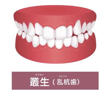歯がガタガタに並んでいたり、重なっている状態を叢生といいます。歯並びが乱れると、すみずみまで歯磨きがしづらくなり、むし歯や歯周病のリスクが高まります。