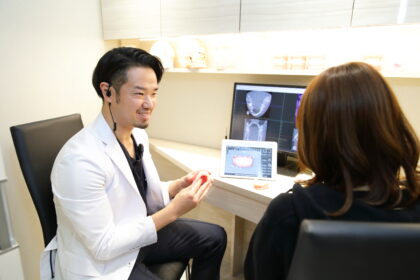 AI分析は大量のデータをもとに、患者様の骨格や歯並びを高精度に解析。治療後の横顔や口元の変化をシミュレーションソフトで視覚化できるため、治療の効果を具体的にイメージしやすく、納得して治療に臨んでいただけます。