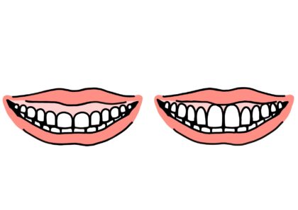 - 歯ぐきの面積が多く、前歯が小さく見える