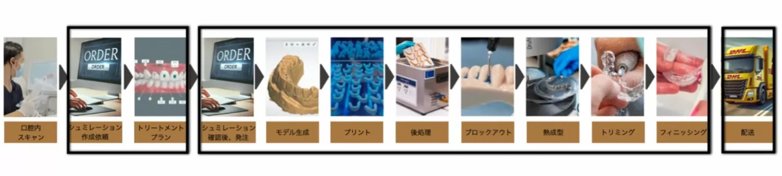 - 従来の外部委託アライナーは数週間かかるが、ダイレクトプリントなら最短 1 日で治療開始。