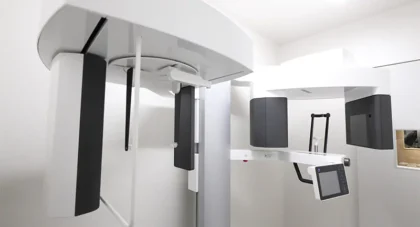 歯科用CTは、骨の質や高さ、歯の生え方などさまざまな詳細データを3次元の画像で取得できるため、治療の精度が向上します。CTと言えば放射線量が多いイメージがあるかもしれませんが、歯科用CTは医科用CTよりも圧倒的に被曝量が少ないので、安心して受けていただけます。